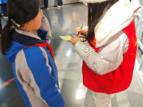 (图为“文脉寻踪”组学生领取奖励贴纸 摄/王若维)