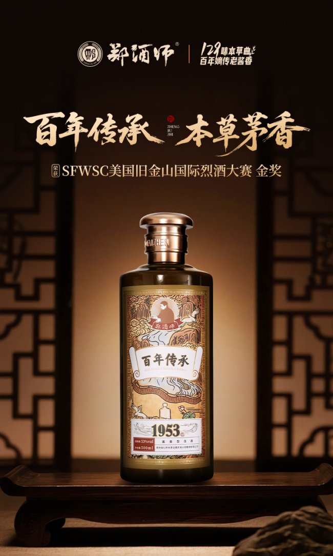 • 宗师起源:始于1585年郑氏入川,400余年酱香薪火相传。 • 酱酒之魂:1915年巴拿马万国博览会扬名;茅台镇“三大烧坊”核心工艺皆出郑门。 • 本草入曲:独拥129味本草入曲秘方,郑义兴大师奠定现代茅台品质基石。 • 正统传承:1979年郑氏传人遵师嘱建厂,2011年“郑酒师”品牌正式成立。